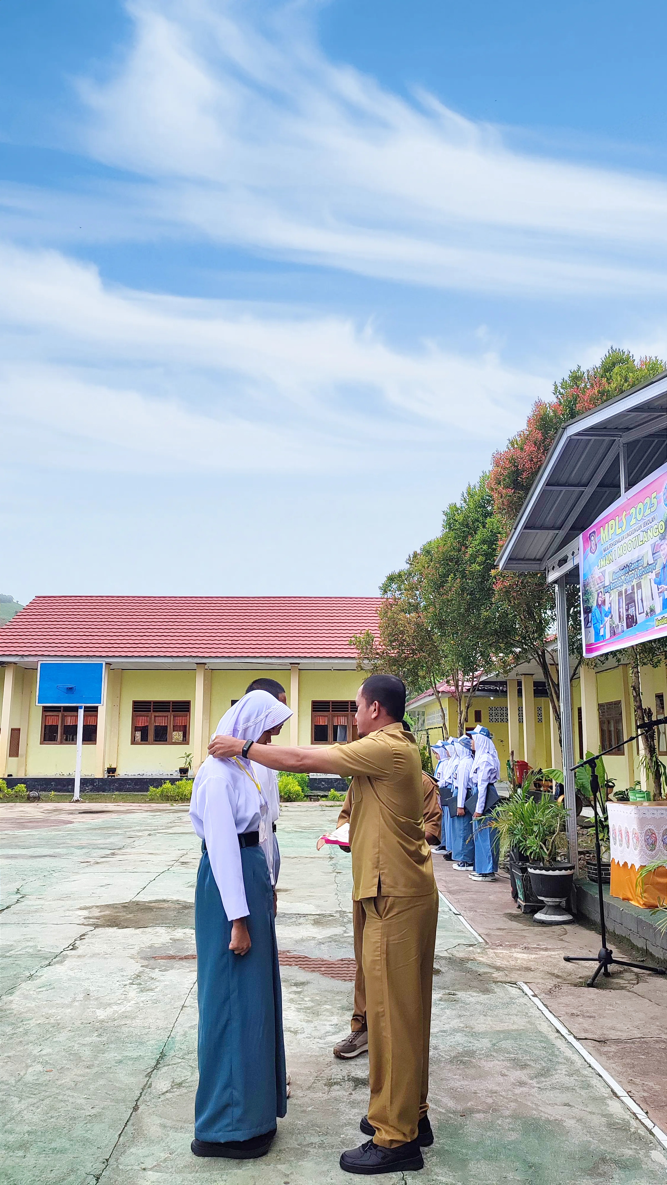 Kegiatan pembukaan MPLS ini ditutup dengan penyematan tanda peserta MPLS secara simbolis kepada dua perwakilan peserta didik baru, sebagai tanda dimulainya kegiatan MPLS secara resmi. Suasana penuh semangat dan antusias tampak dari wajah para peserta didik baru yang siap memulai perjalanan mereka sebagai bagian dari keluarga besar SMAN 1 Mootilango.